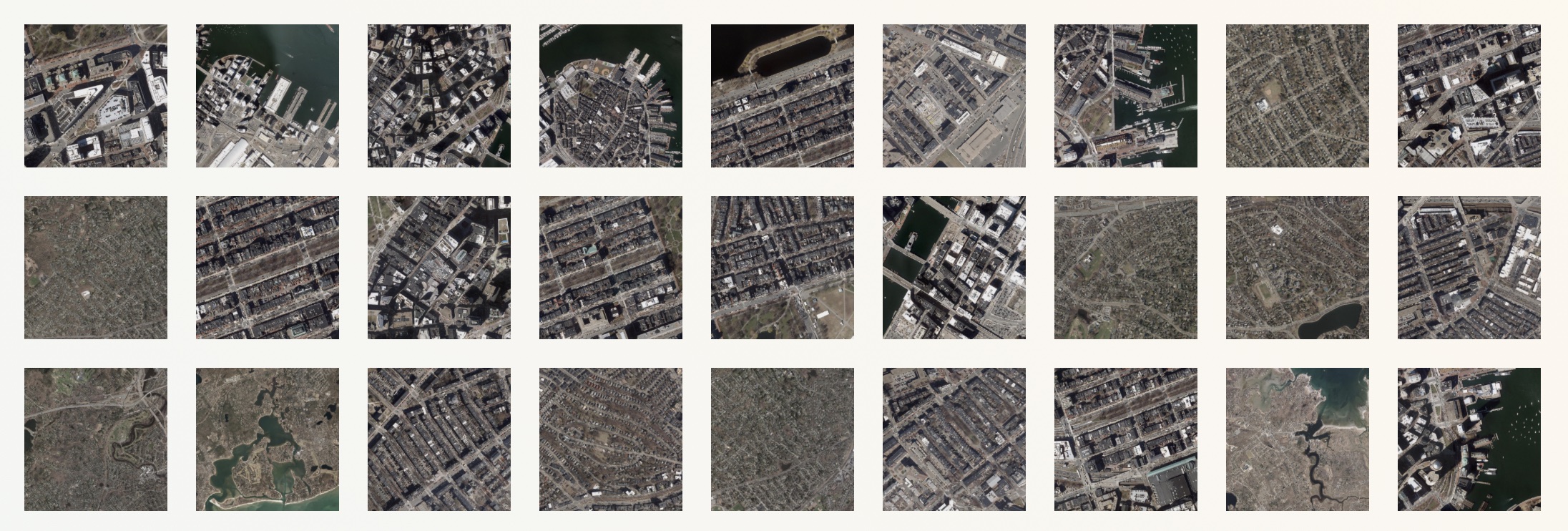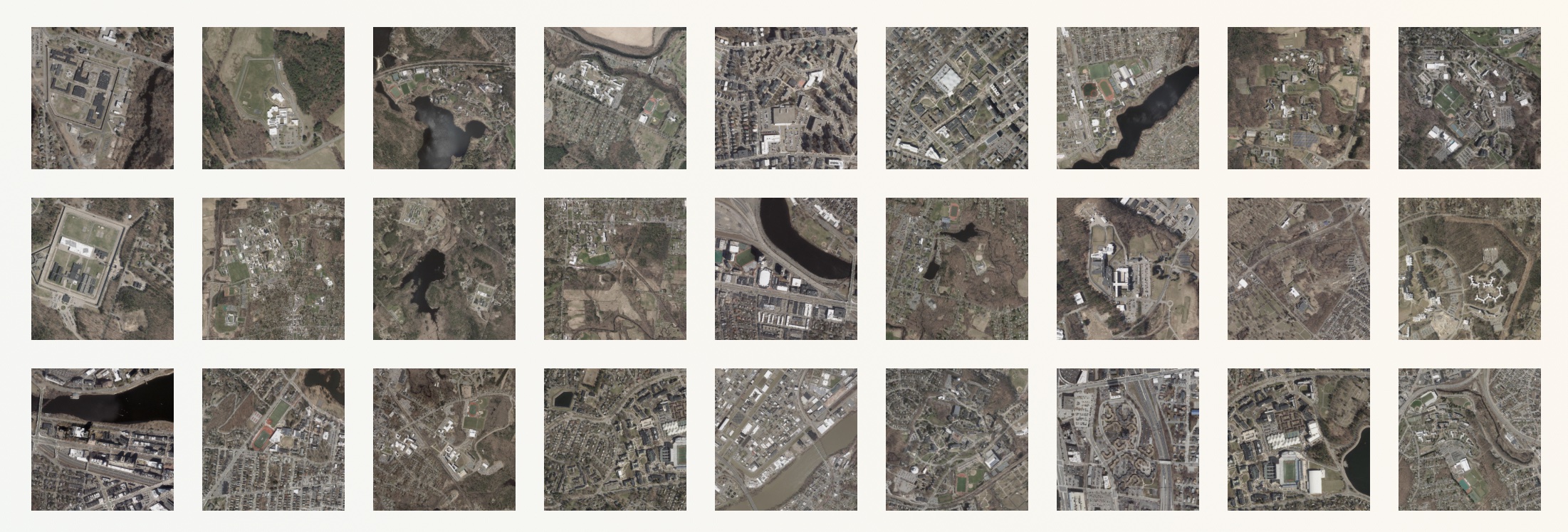 Animations are eye-catching, but I quickly realized that it would be more interesting to array these aerial cut-outs next to one another, in order to create a visual pattern system that also allows the viewer to identify and explore each one of the images. And so Bird’s Eye Cards, the latest @bplmaps Glitch visualization, was born: