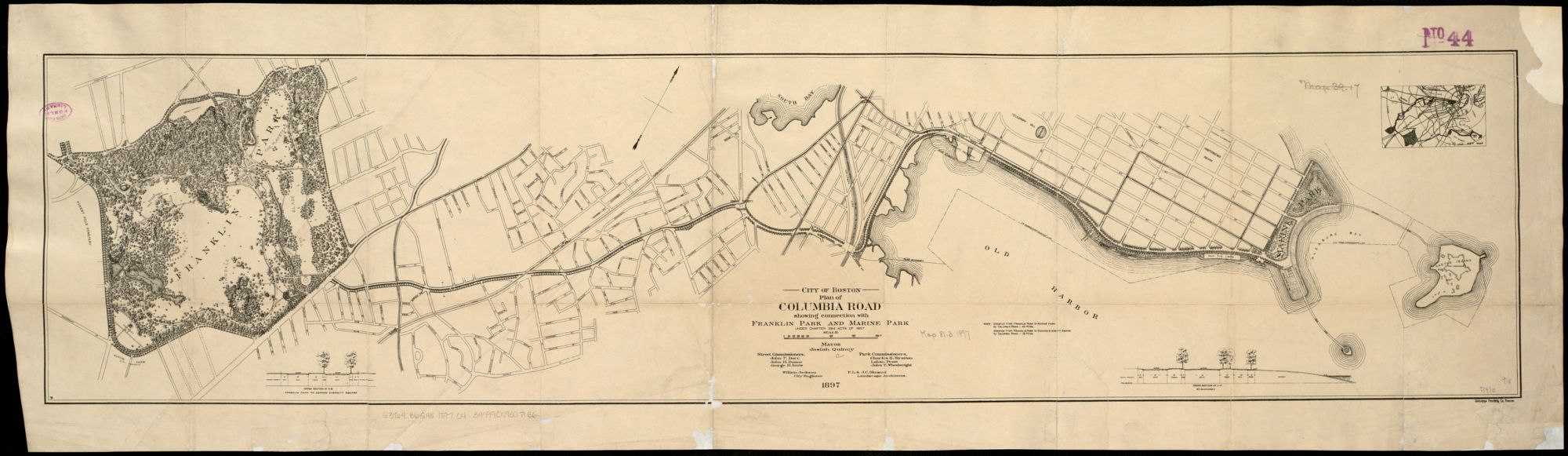 This 1897 plan shows an uncompleted portion of Olmsted's imagined Emerald Necklace.