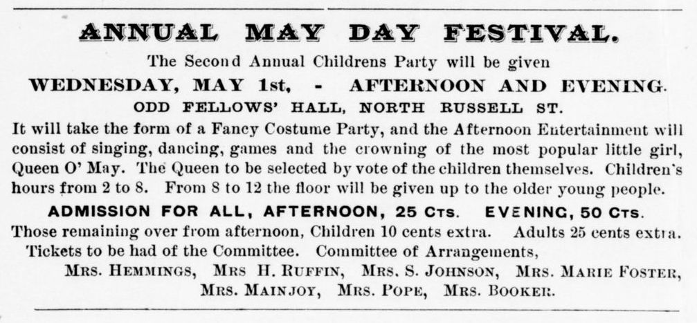 As a young child, and then as a mother with children of her own, Florida might have participated in a May Day celebration like this one organized by many of the women she knew and advertised in the Woman’s Era magazine in 1895: