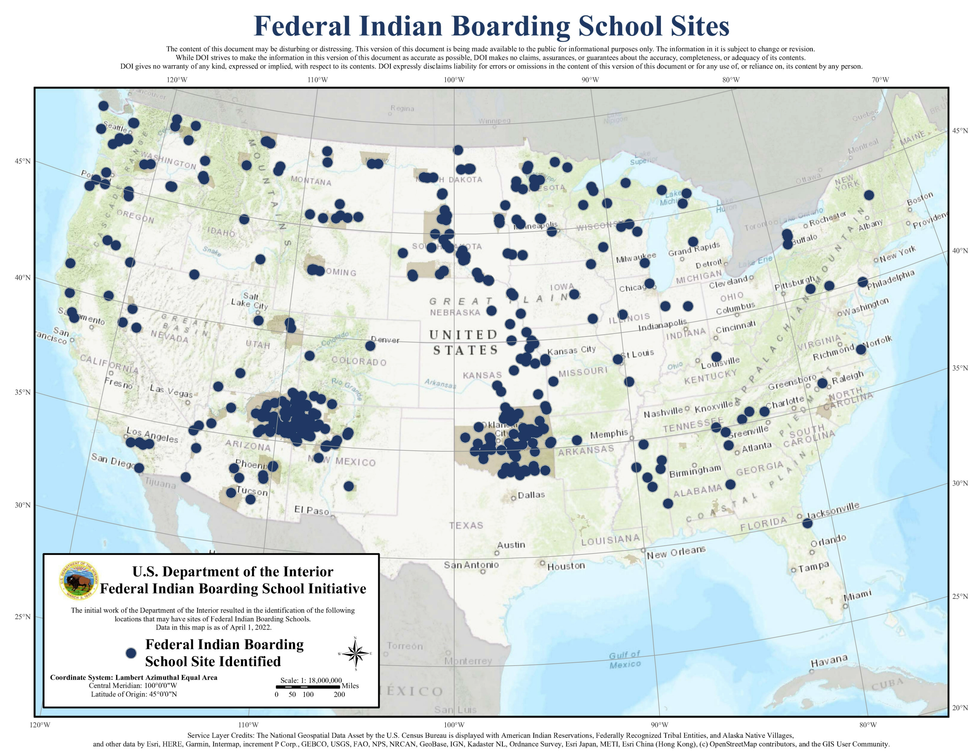 U.S. Department of the Interior Federal Indian Boarding School Initiative, Federal Indian Boarding School Sites (2022)