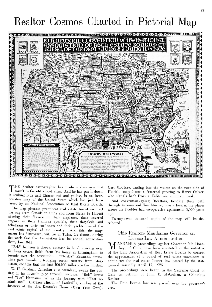 The 1926 NREJ contains a reprint of the NAREB map, with text encouraging Realtors to come to Tulsa. Courtesy of the National Association of Realtors' archives.