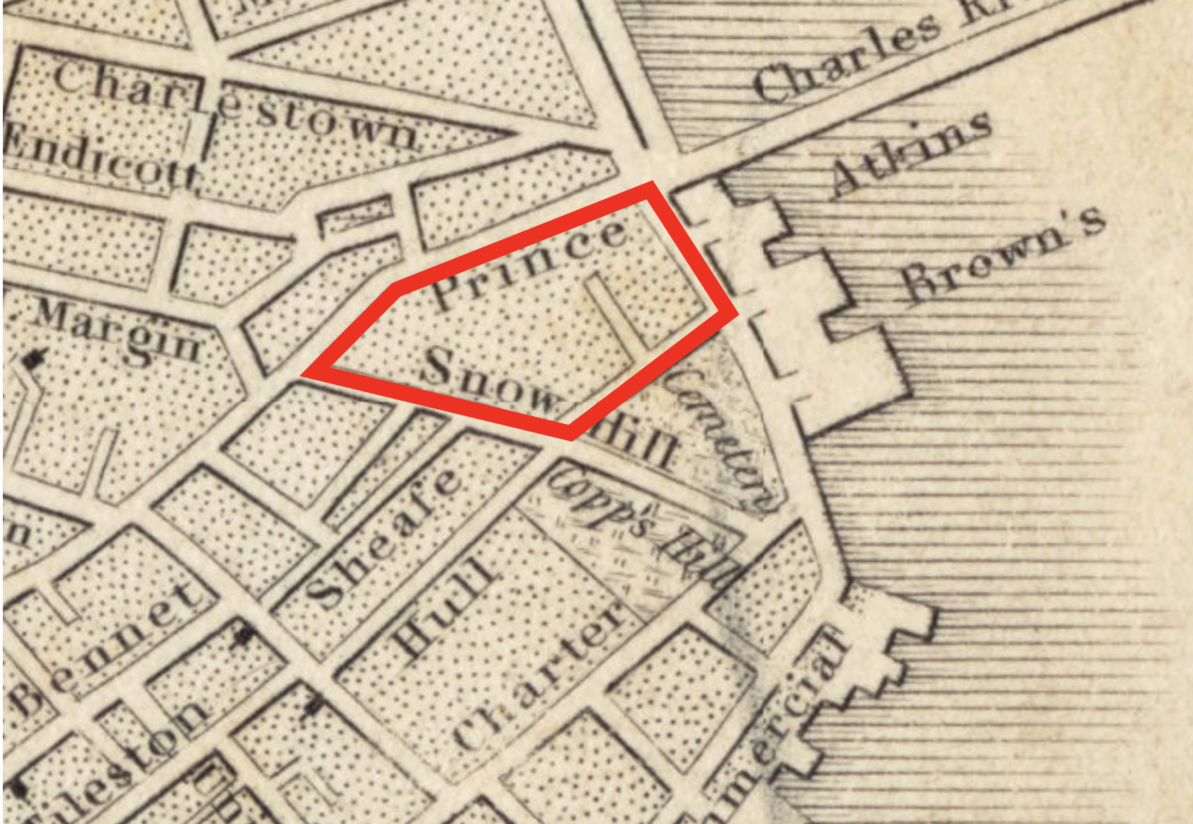 The Boston Gas Light Company transformed about 7.5 acres of the North End into a space for energy production. Several businessmen incorporated the Boston Gas Light Company in 1822. In order to maximize proximity to many customers, the company selected the North End for their gas production site, which was also called a "works." In 1828, the Boston Gas Light Company purchased a parcel of land in the North End between Commercial Street, Snow Hill Street, Hull Street, and Prince Street for their gas works.2 By the 1850s, the Boston Gas Light Company built a wharf and coal sheds on the waterfront. Because the company stored their coal in close proximity to their works on the wharf, the waterfront location allowed the company to control their fuel supply and subsequently bolster productivity.
