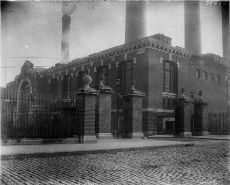 In the nineteenth and early twentieth centuries, power stations were fixtures of Boston's landscape. Corporations burned coal to produce gas for lighting, including at the Boston Gas Light Company's works in the North End. Companies later generated electricity as a utility, at facilities like the Edison Electric Illuminating Company's L Street Power Station in South Boston. In addition, corporations often built their own power stations, such as the Quincy Market Cold Storage & Warehousing Company's power house on Sargent Wharf, and the Boston Elevated Railway Company's power station on Lincoln Wharf. While each complex met the company's distinct demands, Boston's power stations had a lot in common—especially their waterfront locations.
