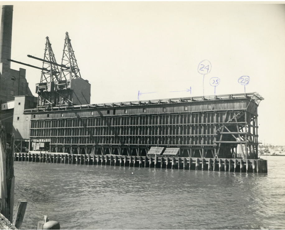 The EEIC dredged and remade the Reserved Channel for this infrastructure, and additionally expanded their waterfront site from 22.3 acres to 33.5 acres by driving piles into the harbor.8 On their new waterfront land, the EEIC primarily built coal towers, a movable crane, and conveyor equipment that transferred shipments of coal into the station by 1919. In Atlascope, comparing the 1899 atlas to the 1919 atlas highlights how the EEIC transformed the waterfront by making new land on the Reserved Channel and expanding the number of buildings within the L Street Power Station complex.