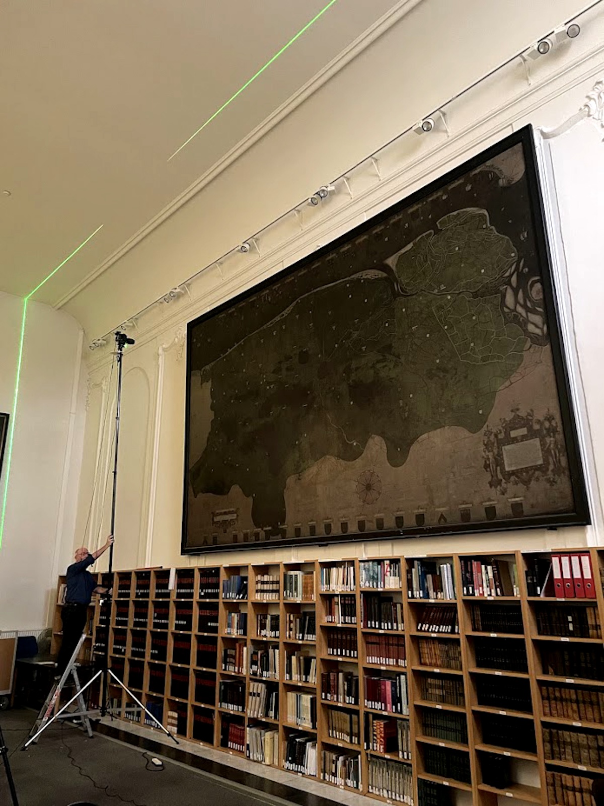 This required more than high-resolution photographing shown to the left—it also meant georeferencing the map by anchoring it to modern coordinates. This process allows the map to be explored and analyzed as part of today's digital spatial infrastructures.