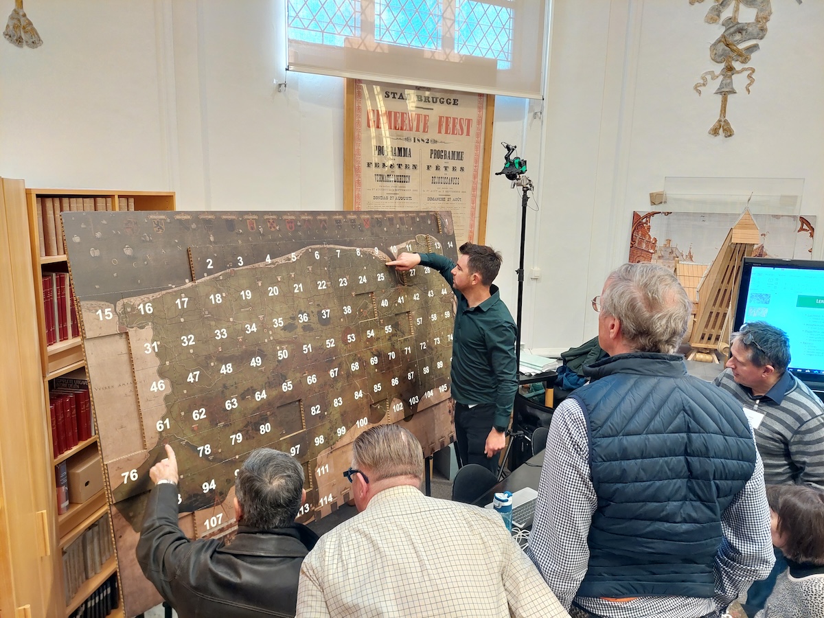Over the course of two days, the Bruges City Archives became a shared workspace for 50 participants, selected from over 60 enthusiastic responses to our open call. The group included amateur historians, local heritage volunteers, map enthusiasts, students, and a handful of heritage professionals. While most participants lived within the region depicted on the map, a number of outliers (drawn by their cartographic interest) joined from cities like Brussels, Antwerp, and Aalst. All in all, the group represented a wide range of regional affiliations, backgrounds, and perspectives.