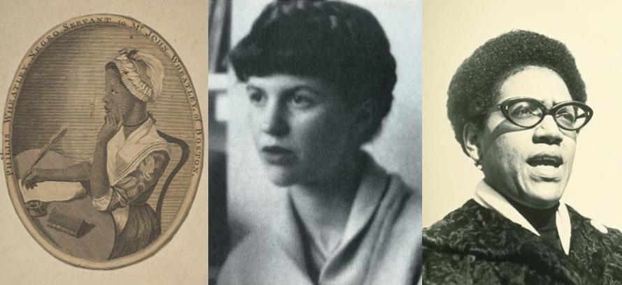 From Left: Poets Phillis Wheatley, Sylvia Plath (photograph by Giovanni Giovannetti/Grazia Neri), and Audre Lorde (photograph by Elsa Dorfman).