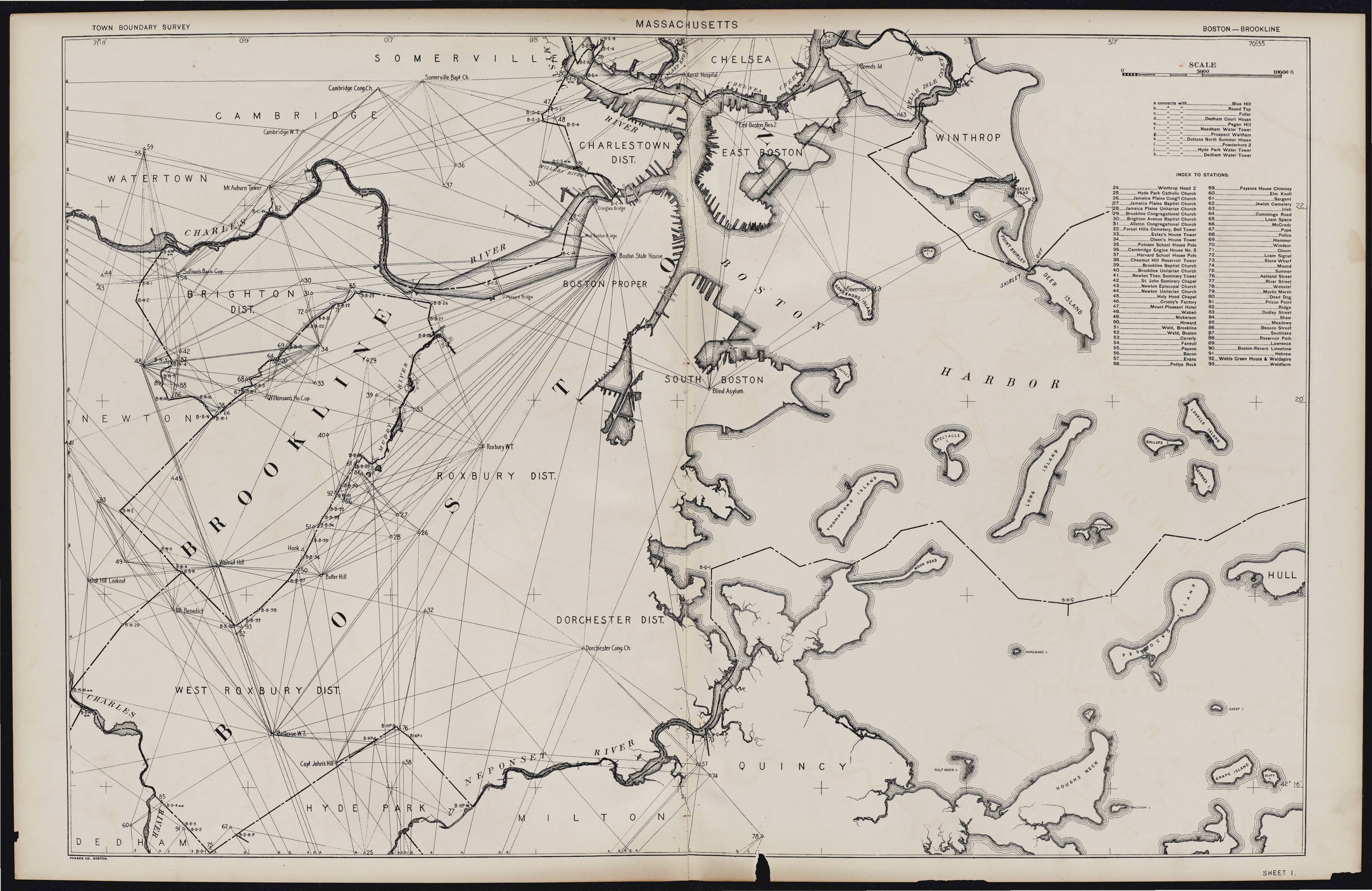 Trigonometric survey lines for Boston from the boundaries atlas