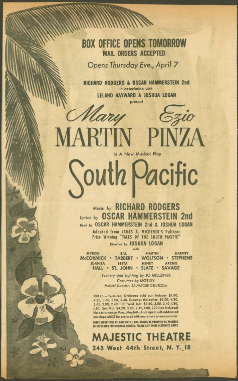 Detail from the printed program for the musical South Pacific, Courtesy of the New York Public Library digital collections.