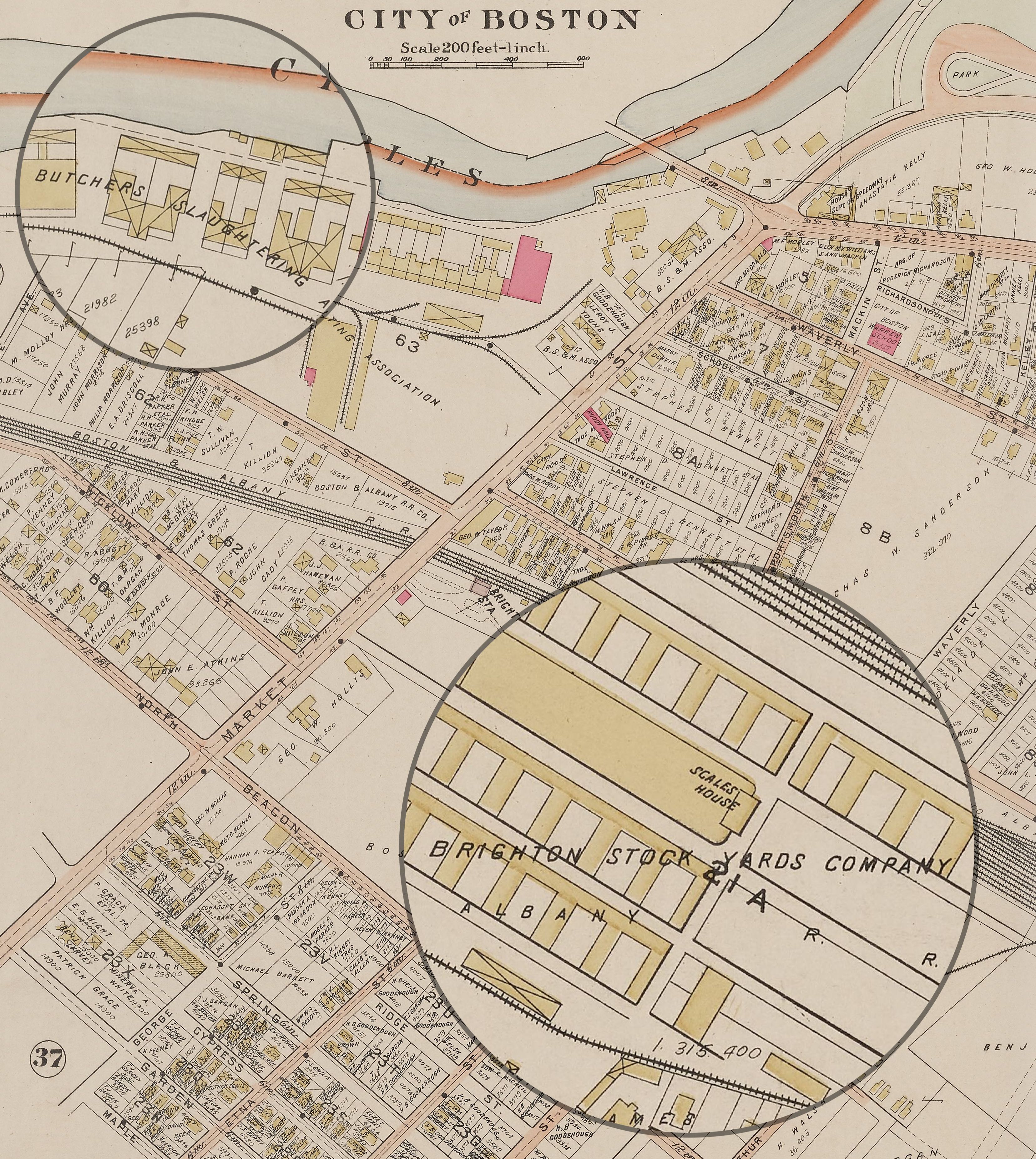 The expansion of the Boston and Albany Railroad allowed the cattle industry to advance significantly by the time Hathaway arrived. The slaughterhouses and Abattoir, built in 1870, became a profitable industry for many property owners who were involved in the cattle business. Profits from the cattle trade also advanced real estate markets.